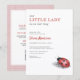 Adorable all in one ladybug gingham baby shower invitation featuring a sweet ladybug theme with classic red and black accents. Designed to create a cheerful and charming atmosphere while keeping RSVP and event details conveniently in one card. Perfect for baby girl showers, baby sprinkles, and playful themed celebrations. Editable text. Clean print-ready layout.