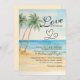 Um convite elegante para casamentos com praia de aquarela e palmeiras que você pode personalizar com seus detalhes.