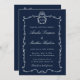 Elegant navy blue French frame wedding invitation with details on the back, perfect for a modern classic or romantic vintage wedding. For more advanced customization of this design, please click the DESIGN TOOL BUTTON above!