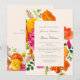Embrace the charm of nature with this enchanting wedding announcement, adorned with a lively arrangement of whimsical poppies and ranunculus flowers. The rich tapestry of orange, coral, and fuchsia blooms, intertwined with verdant foliage, brings a delightful burst of color to your special occasion. Designed to capture the essence of a sun-drenched garden, this invitation sets a romantic and joyful atmosphere for your upcoming marriage. Let these exquisite floral elements herald the beginning of your forever.