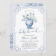 Convite de Almoço de Bebê em Jarra de Ginger de Chinoiserie Floral Branca