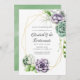 Convite de almoço de damas de honra de casamento com moldura geométrica dourada e lavagem de aquarela em verde oliva reverso com suculentas da moda.