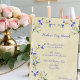Belos convites de flores roxas e amarelas da primavera para o Dia das Mães, Aniversário, Aniversário de Casamento, Café da Manhã de Casamento. Fundo elegante de cor creme vintage com ramos florais da primavera. Altere o texto para criar um convite para um Café da Manhã de Aniversário, Jantar de Rehearsal, Café da Manhã de Casamento, você decide. Personalize o texto e a fonte para se adequar.
