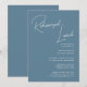 Cartão de Convite Para Almoçar O Almoço Do Ensaio Quimológico De Script Quimísico Azul Dusty. Celebre o seu dia especial com esta elegante e bela carta de convite para casamento para embelezar a sua ocasião especial. Todos os textos estão pré-organizados para que você personalize fácil e rapidamente com seus próprios detalhes.