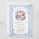 Convite de Chuveiro de Noiva Floral Rosa Jardim Chinoiserie Azul Elegante