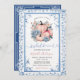 Convite elegante de chá de noiva em estilo jardim chinoiserie azul com floral rosa