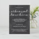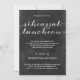 Este convite de almoço de treino em estilo lousa apresenta uma fonte de caligrafia manuscrita caprichosa e vintage e um fundo de lousa. Os detalhes do evento podem ser personalizados para a sua festa.