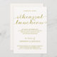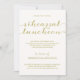 Estes elegante, ouro e convite branco do almoço do ensaio caracterizam uma lunática, pia batismal escrita à mão da caligrafia do vintage-estilo. Os detalhes do evento podem ser personalizados para seu partido.