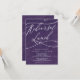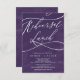Este romântico convite para o almoço de coloração d'água roxa é perfeito para um simples ensaio de casamento. O clássico design moderno apresenta espirais ricos e turbilhões brancos com magnífica e elegante tipografia à mão.