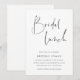 Convide os convidados para celebrar a noiva com esses convites modernos e minimalistas para almoço de noiva em preto e branco clássico, da Redwood & Vine Design Co. O design simples apresenta "almoço de noiva" em letra cursiva casual, com os detalhes do evento abaixo em letras modernas em preto cinza suave.