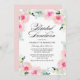 Estes elegantes convites para o almoço de noiva de casamento apresentam um lindo quadro floral de flores margaridas de cor d'água em tons suaves de rosa, pincel, aqua e verde. Texto de convite preto clássico com acentos de script. Um padrão branco de bolinhas suíça aparece no lado traseiro rosa do balé claro da placa. Perfeito para um evento de primavera ou chá de panela de verão.
