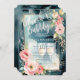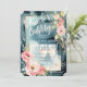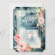 Brinde à noiva com este belo Chá de panela Brunch e Bubble. Apresentando um design de aquarela de folhagem floral cor-de-rosa e óculos de champanhe sobre fundo azul.