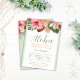 Este convite de luau de aniversário chic tropical apresenta um elegante arranjo floral de flores cor rosa, brancas e corais, juntamente com uma cobertura branca escaldada. As letras verde-sábio e coral acrescentam a este design tropical em grande escala, perfeito para qualquer celebração. Fácil de personalizar com suas informações de evento. O verso do convite apresenta sotaques de buquê tropicais contra um fundo de cor clara.