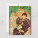 Cartão com a poster litográfica de Alphonse Mucha Lorenzaccio (1896). O eponímico Lorenzaccio da peça, em que as estrelas Sarah Bernhardt, está vestido de roxo e preto, segurando um livro. Um dragão verde o ignora. Um presente de excelente para fãs de Arte Nouveau e de Arte Checa.