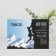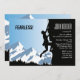 Um convite do esporte-tema para um extremo ostenta o entusiasta. Este convite considerável caracteriza uma silhueta do montanhista de montanha contra um fundo nevado da montanha. (VOS)