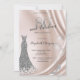Elegante cintilação prateada com saltos altos, vestidos e balões em um fundo de ouro rosa.
