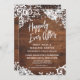 Esta design elegante e rústica apresenta algumas tendências populares de design de casamento combinadas de uma nova maneira. A fundação é um rico fundo de madeira marrom, enrolado em cordas de luzes cintilantes, pulverizações florais de cor aquosa branca e sotaques de rendas. Usando uma fonte moderna de escrita manual, criei uma imagem gráfica simples que dizia "Feliz Nunca Depois". Este cartão é ideal para um evento casual ou temático de recepção de casamento postada ou celebração. Seus detalhes pessoais são facilmente adicionados para personalizar este modelo tão pouco ou muito quanto você desejar. Todas as camadas estão desbloqueadas para permitir o controle necessário. Por favor, não hesite em contactar-me para receber pedidos especiais ou assistência em matéria de personalização. // 105 // Concebida por Melody Watson para Paper Muserie.