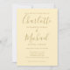 Com nomes no estilo de assinatura, este convite de casamento elegante pode ser personalizado com as suas informações em letras douradas num fundo amarelo de botão-de-ouro com a foto escolhida no verso. Você pode personalizar a cor do fundo para combinar com o tema do seu casamento. Desenhado por Thisisnotme©