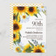 Girassóis amarelos e castanhos russos e margaridas brancas com lindas folhas verdes no convite de aniversário branco de 90 para mulheres. A parte traseira desta placa tem um padrão de bolinhas amarelo em branco. Entre em contato conosco para obter ajuda com a personalização ou para solicitar produtos correspondentes.