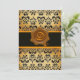 CONVITE AMARELO MARROM E PRETO DAMASCO, MONOGRAMA DE SELLO