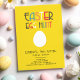 Convite engraçado para Caça ao Ovo de Páscoa com ovo branco e fundo amarelo.