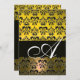 Convite AMARELO PRETO DAMASCO MONOGRAMA ,branco brilhante