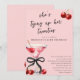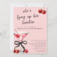 Rosa Amarrando Os Meus Vinte Anos Cherry Martini aniversário de 30 anos - Comemore seu aniversário de 30 anos no estilo com este convite de aniversário preto de cherry martini coquetel para ela em rosa. Apresentando uma ilustração aquosa de um martini de cereja amarrado com um arco preto. A mistura de script de na moda e texto de bloco elegante faz deste um convite elegante e chic para aniversários. Personalize este convite de festas aniversário de 30 anos editável com os detalhes do seu próprio partido. Perfeito para um aniversário de cereja, martini temia aniversário ou tema de aniversário de arco negro. Disponível como download digital instantâneo, envie-o por email de texto ou mídia social.