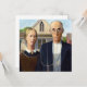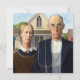 Este é o clássico quadro Grant Wood, American Gothic, mostrando um fazendeiro e sua esposa parados em frente à sua fazenda, ele com seu garfo de jarra, sua olhando de lado para ele.