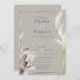 Envie seus convites de festa de noivado no mesmo tema do seu casamento. Os convites do Chic Ametist Anthurium Pampas Grass trazem um toque moderno e romântico para qualquer casamento. Uma cinza de cogumelo quente é hospedeira da grama-palha colorida de creme e folhas de ametista anthurium, com duas linhas refletoras douradas ao longo das bordas. Uma combinação de caligrafia de script combinada com um layout de texto minimalista e contemporâneo faz dele um pacote de casamento de estilo de tendência. Esta é parte de uma coleção de artigos de papelaria de casamento com acessórios de casamento. Arte original por © WhimsicalArtwork™ criada para BarefootBride™