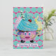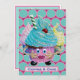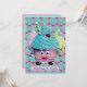 Arte ilustrada de fantasia Convite para Bolo e café ou para Aniversário - Cupcakes engraçados e coloridos Convite para Amigos e Família. Uma criatura doce - Arte colorida, saborosa e caprichosa chamada "Cupcakes Psicodélicos". Em cores turquesa, rosa, amarelo, verde, azul.