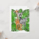 Convite Amigos Safari, girafa, zebra, tigre, folhas de pal