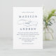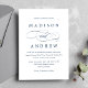 Simples, clássico convite de casamento e branco com "e" em uma letra elegante que é perfeita para casamentos em qualquer época do ano. O reverso do convite de casamento apresenta um design de padrão vinculado tradicional. Personalize os convites de casamento de na moda com seus detalhes de casamento personalizados!