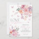 Amor em Bloom | Um bonito Chá de panela floral com borboletas e flores silvestres em tons roxos, cor de pêssego e rosa.