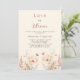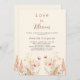 Amor no Bloom Chá de panela. Um fundo creme, cor bege, decorado com flores silvestres de cor aquosa em verde bege, rosa, poeirento.