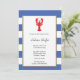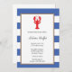 Uma lagosta vermelha em uma beira da listra azul. Dê a todos seus convidados um lembrete brilhante e amigável sobre seu próximo comensal do marisco com este convite vibrante da lagosta.