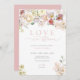 Amor de flor! Nossos convites de chá de panela cor-de-rosa e florescentes de flores silvestres são a maneira perfeita de celebrar a noiva-a-ser com um tema de chá de panela florescente. Este amor floral primavera está em convites para chás de casamento florais são personalizáveis, então você pode adicionar todos os detalhes importantes sobre o amor pastel no chá de panela florescente. O amor à flor da primavera do THALLO está em um convite para chás de panela florescente que apresenta um design feminino com fundo branco e flores silvestres de cor d'água em tons de primavera macio, de rosa e lilás a creme e verde poeirento, emparelhado com fontes serif clássicas e manuscritas em rosa e cinza. Personalize este amor cor-de-rosa em chá de panela florescente adicionando nomes, data, hora, local e outros detalhes. O Amor De Flor Selvagem Está Em Chá de panela De Sangue, Chá de panela, Chá de panela Floral Rosa, Chá de panela De Flor Selvagem
