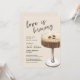 Celebre a noiva a ser com um chá de panela espresso martini chico "O amor é a criação". Apresentando um design lúdico, mas elegante, este convite dá o tom para um encontro sofisticado cheio de cocktails divertidos e deliciosos. O tema do na moda espresso martini, complementado pela tipografia moderna, cria uma víbora moderna e otimista perfeita para uma comemoração viva. Ideal para noivas que amam coquetéis, este convite promete um chá memorável, misturando amor, amizade e um toque de elegância com uma reviravolta refrescante.