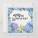 Um trabalho de arte de caligrafia coreano "사 랑 피 어 나 다" (Love in Bloom) enquadrado com flores de hydrangea. Um cheio floral sonhador de elegância e inspiração.