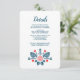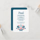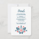 Inspirado por elementos frescos e ousados do design escandinavo, este cartão de detalhes de casamento apresenta belas ilustrações florais em vermelho e azul.