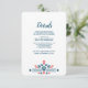 Inspirado por elementos frescos e ousados do design escandinavo, este cartão de detalhes de casamento apresenta belas ilustrações florais em vermelho e azul.