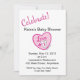 A matemática do bebê é Amor + 1. Convide todos para o seu Chá do Love Plus One com estes convites, com coração com motivo de maiô. Também disponível em azul.