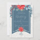 Adicione sofisticação e encanto sazonal ao seu casamento com este maravilhoso cartão de convite floral de inverno. Projetado com uma faixa azul profunda emoldurada por poinsetos vermelhos pintados à mão, folhas azuis foscos, e bagas festivas, é a mistura perfeita da elegância clássica e estilo moderno. O design apresenta o texto principal (editável) na frente, cercado por uma arte de linha floral suave e acentuado com delicados anéis de casamento, e os detalhes no verso. É a escolha ideal para casamentos de inverno ou feriados. Destaques: -Elegante design floral de inverno em matizes ricos de vermelho e azul -Pasta floral de fundo suave para um toque luxuoso -Ideal para casamentos de inverno, Natal ou noite elegantes