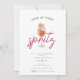 Este divertido chá de panela de verão tem um tema "Love at First Spritz" com sotaques cítricos. A ilustração frontal é uma projeção aquosa de Aperol com cobertura de hibisco e fruta. O verso é um padrão de fatia laranja de cor d'água correspondente com uma cor pantone do ano viva magenta de fundo. É divertido e caprichoso, perfeito para chás de panela de coquetéis de verão.