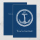 Convite temático náutico. Âncora vintage e coroa de flores. Insira os detalhes do seu evento.