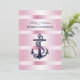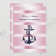 Elegante Âncora Azul Marinho Náutico, Fundo Gradiente Rosa - Convite de Casamento =========