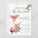 Anel no Ano Novo com este convite de festas de Ano Novo com cocktails, sinos e pinus comprando cenas de férias em aquarelas vibrantes e tipo de roteiro.