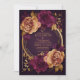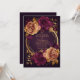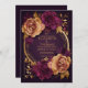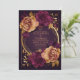 Um convite de casamento cor púrpura escura com um anel de Ouro decorado com Rosas de Púrpura Escura e Açúcar Marrom.