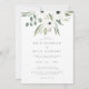 Design apresenta um buquê de verde-aquarela, eucalipto, sábio e anêmonas desenhados à mão especialmente para a coleção de convites para casamentos do "Evergreen Garden". Para alterar seus nomes, local e data do casamento e outros detalhes, clique em "Personalizar". Veja o link de coleção nesta página para ver todos os itens correspondentes neste belo design ou veja a coleção aqui: https://cutt.ly/nbKwTgB