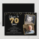 Anima-se até 70 anos 2 fotos Geram Dourados números de balão Convite de festas preto. Celebrar um 70 de aniversário com estes convites de festas elegantes e festivos com o título CHEERS TO 70 ANOS com números falsos de balões metálicos de ouro e confetti, tipografia moderna de roteiros e duas fotos com sua escolha de cor de fundo (mostrada em preto). ASSISTÊNCIA: para obter ajuda com a modificação ou personalização do design, transferir o design para outro produto ou, se você quiser coordenar itens, entre em contato com o designer ANTES de fazer o pedido via Chat Zazzle ou email makeitaboutyoustore@gmail.com.