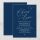 Anuncie a sua alegria para sempre em estilo com o nosso belo e moderno e belo design azul-tema do chá de panela (Saúde para amar). Com seu design sofisticado, mas lúdico, este convite certamente define o tom de um evento inesquecível. A carta de convite apresenta um moderno design de escrita romântica minimalista, acrescentando um toque de elegância eterno à sua celebração. Projetado por TeeshaDerrick